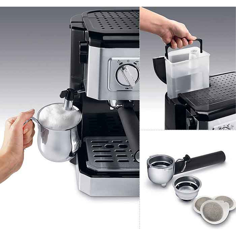 اسپرسو ساز دلونگی مدل BCO431.S با دو مخزن جداگانه برای قهوه و بخار، امکان استفاده همزمان از این دو ویژگی را به شما میدهد. با ظرفیت بالای مخزن آب 1.4 لیتر، میتوانید برای تهیه قهوههای مختلف از آن بهرهبرداری کنید. همچنین، سیستم خودکار قطع و وصل این دستگاه بعد از 30 دقیقه عدم استفاده، انرژی را صرفهجویی میکند.
