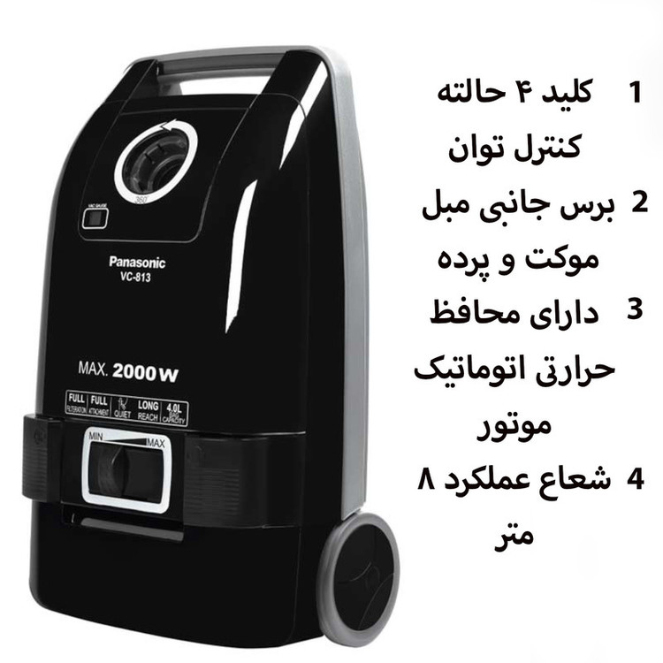 - کلید 4 حالته کنترل توان - برس جانبی مبل ، موکت و پرده - دارای محافظ حرارتی اتوماتیک موتور -شعاع عملکرد: 8 متر