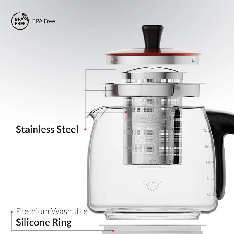 اجزا قابل شستوشو در ماشین ظرفشویی: قوری , فیلتر (تفالهگیر) , در کتری , در قوری