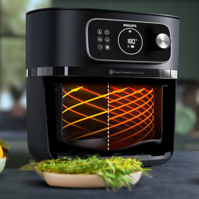 این مدل جزء معدود مدل هایی است که قابلیت اتصال به Wifi را دارد تا کاربر بتواند با کمک گرفتن از اپلیکشن غذاهای بسیار متعددی را آماده کند.این ایر فرایر فیلیپس دارای تکنولوژی Rapid CombiAir است که به شما اجازه میدهد تا نوع پخت دلخواه خودتان را در منوی دستگاه ذخیره کنید و هر بار خواستید از همان نوع پخت به صورت اتوماتیک بهره ببرید .