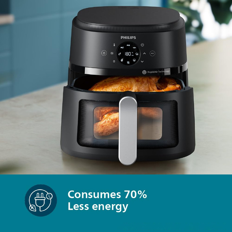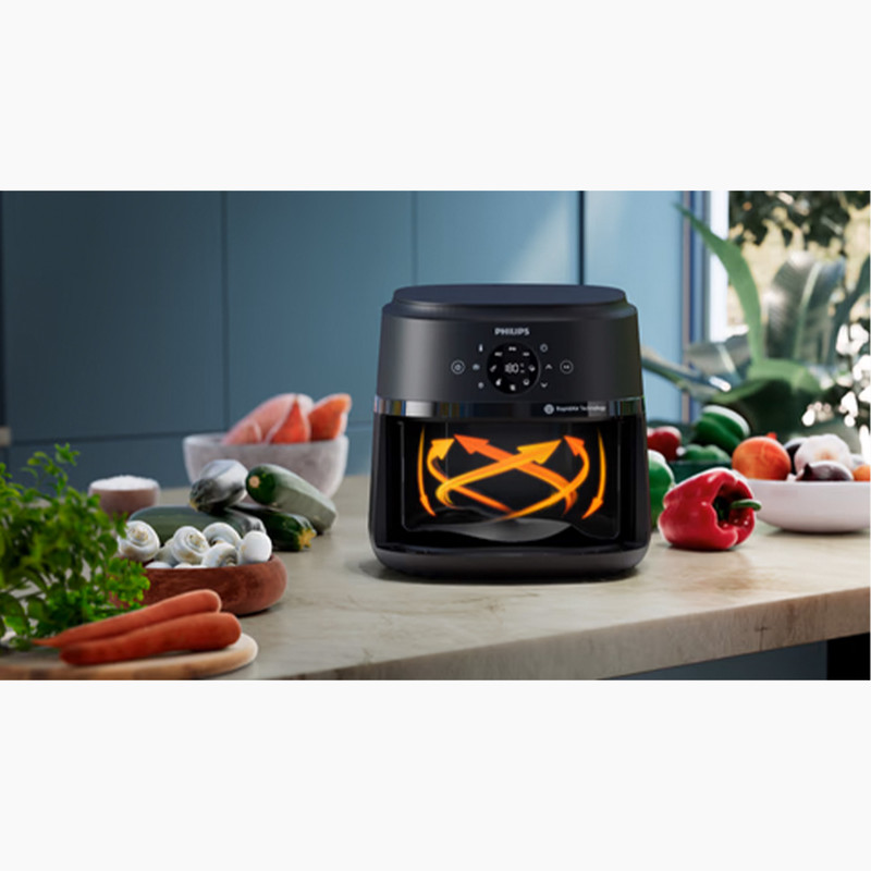 با قدرت ۱۷۰۰ وات و فناوری پیشرفتهی Rapid Air، این هواپز غذاها را با لایهای طلایی و بافتی آبدار آماده میکند. سیزده عملکرد پخت متنوع، از سرخکردن و گریل تا پخت کیک و خشک کردن میوه، در کنار کنترل لمسی دیجیتال و تنظیم دقیق دما تا ۲۰۰ درجه سانتیگراد، دست شما را برای هر نوع خلاقیت آشپزی باز میگذارد.