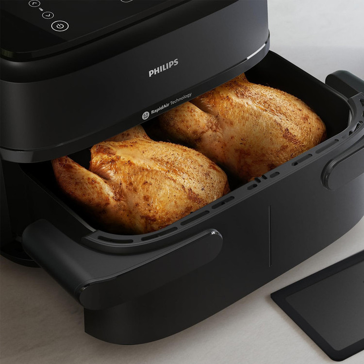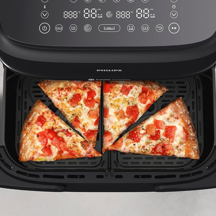 هواپز 7.1 لیتر فیلیپس مدل NA150/09 یکی از کاملترین محصولات این برند برای پختوپز سالم و سریع است. طراحی هوشمند و عملکرد قدرتمند آن باعث شده تا تجربه آشپزی روزمره به کاری ساده و لذتبخش تبدیل شود. این مدل با ترکیب ظرفیت بالا، توان زیاد و فناوری پخت بدون روغن، برای خانوادههایی که به تغذیه سالم و در عین حال طعم اصیل غذا اهمیت میدهند انتخابی کاملاً مناسب است. بدنه دستگاه با ابعاد 30 در 30 در 44 سانتیمتر و وزن 7.3 کیلوگرم، ظاهر جمعوجور و متناسبی دارد و رنگ مشکی براق آن جلوهای مدرن به آشپزخانه میدهد. وجود نمایشگر دیجیتال با دکمههای لمسی کارکرد آسانی را فراهم کرده و امکان کنترل دقیق دما، زمان و برنامههای پخت را فراهم میسازد. سیم 80 سانتیمتری هم آزادی عمل کافی روی سطح کابینت ایجاد میکند. توان مصرفی 2450 وات در کنار سیستم گردش هوای داغ 360 درجه باعث میشود مواد غذایی بهطور یکنواخت پخته و سطح آنها ترد شود، بدون نیاز به روغن زیاد. دمای قابل تنظیم از 40 تا 200 درجه سانتیگراد محدودهای گسترده برای پخت انواع غذا فراهم کرده و وجود شش برنامه پیشفرض شامل پخت مرغ، ماهی، گوشت، سبزیجات، سیبزمینی و کیک گزینههای متعدد آشپزی را در اختیار میگذارد. ویژگی برجسته دیگر، قابلیت تنظیم جداگانه دما و زمان برای هر محفظه است که امکان پخت همزمان دو غذای متفاوت را با تنظیمات دقیق فراهم میکند. سیستم قطع خودکار و محافظ گرمای بیش از حد نیز ایمنی دستگاه را در هر شرایط تضمین میکند. علاوه بر این، محفظه داخلی قابل تفکیک و پوشش نچسب آن، شستوشو را آسان کرده و تمام قطعات جداشدنی قابلیت شستوشو در ماشین ظرفشویی دارند. با ظرفیت قابلتوجه 7.1 لیتر که پاسخگوی نیاز یک خانواده 6 نفره است، این هواپز گزینهای کاربردی برای پخت وعدههای حجیم محسوب میشود. دوام بالا، پخت سریع و نتیجهای سالمتر از سرخکردن معمولی، از اصلیترین دلایل محبوبیت مدل NA150/09 است. فیلیپس با این محصول نشان داده میتواند بین سلامت، کارایی و سهولت استفاده تعادلی دقیق برقرار کند.